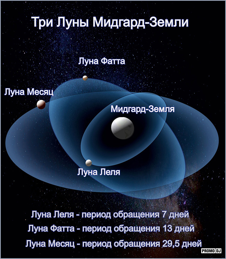 ФАТТА – период обращения 13 суток. Фатту наши Предки перетащили от Земли Деи. В греческих мифах Фатту называют Фаэтоном. Луна Фатта была уничтожена 13 тысяч лет назад. Большой осколок Фатты попал в Тихий океан, и гигантская волна по экватору трижды обогнула Землю. Считается, что в это время погибла Антлань (Атлантида). В то время много людей погибло, поэтому число 13 стало как бы страшное, и название «Фатта» дало новое словосочетание – фатальность, как неизбежность, нечто предопределённое.