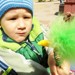 Собака грызёт кость, ребёнок извозился...