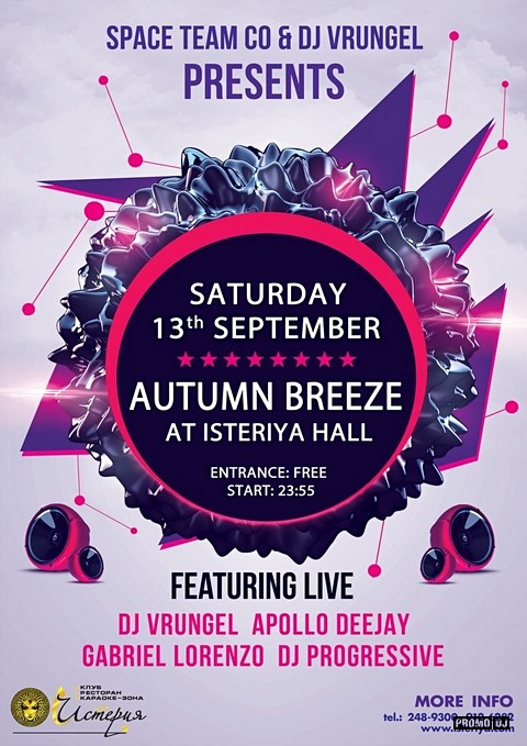 Промоутерская компания Space Team дарит Петербургу ночь самых зажигательных House-ритмов нашего города. Позитивная атмосфера, проверенные временем хиты в миксе с горячими клубными новинками сезона сделают эту ночь по-настоящему яркой и наполненной множеством запоминающихся эмоций !
