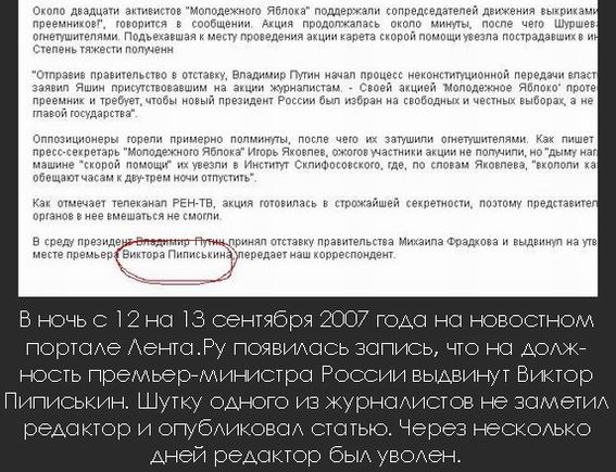 Невьянская наклонная башня. При высоте чуть менее 60 метров, отклонение от вертикали составляет почти 2 метра! ![]() Двигатели для фирмы «Даймлер» Двигатели для фирмы «Даймлер» разработал русский инженер Борис Луцкой. В соответствии с договором, с каждой стороны автомобильных моторов должна была крепиться табличка «Луцкой-Даймлер», но «Даймлер» незаконно присвоил патент себе. Гоночный Mercedes 120PS (1906 г.) оснащался рядным шестицилиндровым двигателем. Авторство мотора приписывают Борису Луцкому: ![]() Гимн королевской семьи Таиланда Гимн королевской семьи Таиланда, который был официальным гимном страны до 1932 года, написан на музыку русского композитора Петра Щуровского. ![]() Конструкторы Многие ведущие ученые и конструкторы в мире, были русскими. Яблочков и Лодыгин изобрели первую электрическую лампочку, Попов – беспроводной телеграф, Сикорский создал вертолет и бомбардировщик, Сергей Прокудин-Горский изобрел цветную фотографию, а Зворыкин – телевизор. ![]() Первый в мире видеомагнитофон Первый в мире видеомагнитофон появился в 1956 году. Его создателем стала американская фирма «Ампэкс» (AMPEX), отца-основателя которой звали Александром Михайловичем Понятовым. «АМР» — это первые буквы его имени, отчества и фамилии. А поскольку до революции он был полковником царской армии, он имел право на обращение «Ваше Превосходительство», по-английски Exellence. ![]() Испытание первого самолета Как неопровержимо доказывают исторические документы, первый самолет был испытан Александром Федоровичем Можайским на двадцать лет раньше братьев Райт. Это модель первого в мире самолета А.Ф.Можайского: ![]() Основатели Голливуда Двое из пяти отцов-основателей Голливуда прибыли из России. В том числе, основатели «MGM » Голдвин и Майер. Майер до конца жизни плоховато говорил по-английски и с трудом читал сценарии ![]() Chanel № 5 Знаменитый аромат «Chanel № 5» придумала не Коко Шанель, а русский парфюмер-эмигрант Веригин, который работал в парфюмерном отделе «Шанель» вместе с коренным москвичом Эрнестом Бо. ![]() Русские корни у актеров Русские корни есть у Дэвида Духовны, Сильвестра Сталлоне, Стивена Спилберга, Натали Портман, Милы Йововоч, Вайноны Райдер и Шона Пена. Прабабка актрисы Вупи Голдберг родом из Одессы. ![]() Искусственное сердце Первое искусственное сердце тоже было создано в России. Прибор сконструировал и апробировал на животных в 1936 году Владимир Демихов. Электромоторчик для сердца он купил на деньги, которые ему прислали родители на новый костюм. ![]() |
