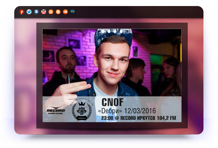 Resident: RCRD 104,2 FM (Irkutsk), Конкистадор FM (Irkutsk), Радио Рекорд Иркутск (Irkutsk), Debri.FM (Irkutsk), Pirate Station Radio (Saint Petersburg)