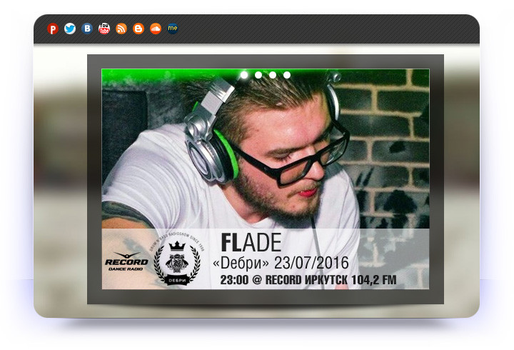 Resident: RCRD 104,2 FM (Irkutsk), Конкистадор FM (Irkutsk), Радио Рекорд Иркутск (Irkutsk), Debri.FM (Irkutsk), Pirate Station Radio (Saint Petersburg)