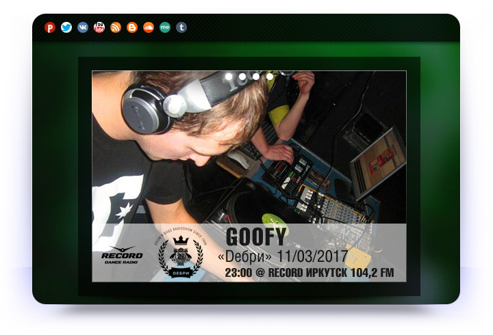 Resident: RCRD 104,2 FM (Irkutsk), Конкистадор FM (Irkutsk), Радио Рекорд Иркутск (Irkutsk), Debri.FM (Irkutsk), Pirate Station Radio (Saint Petersburg)