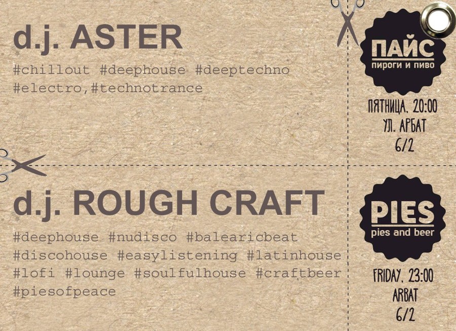 Сегодня, как и было сказано в пророчестве, в ПАЙС ПАБ для вас ставят музыку Dj Aster и Dj Rough Craft, и вся эта феерия звука и харизмы будет происходить всю ночь, до утра. Пиво рекой, да!