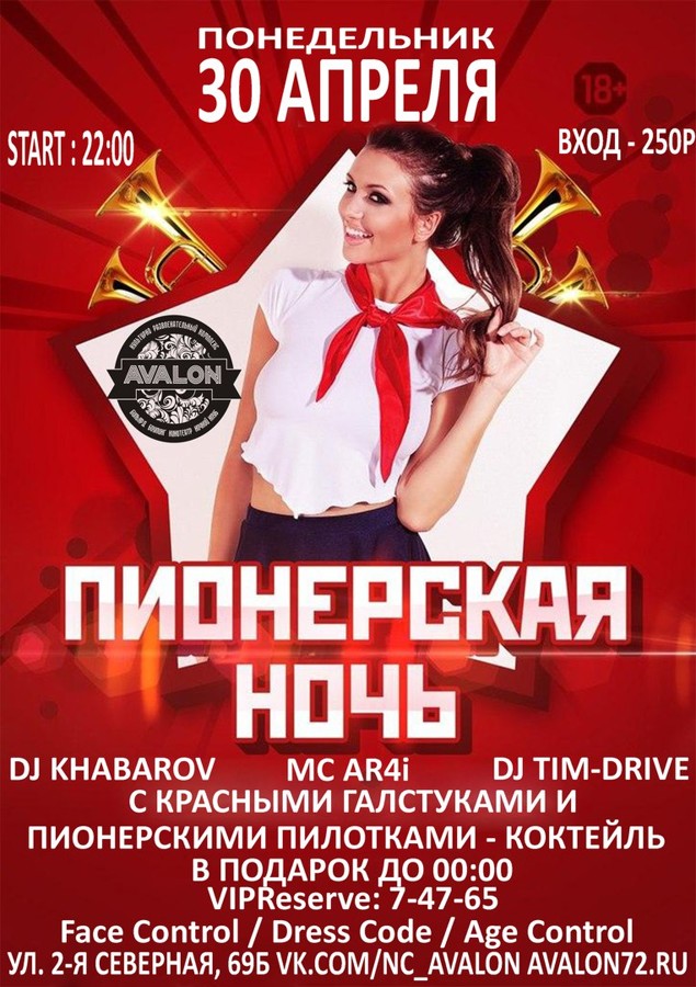 Date and time: 30 April 2018 20:00 Venue: AVALON Address: Ishim, ул. 2-я Северная, 69 show on the map Page:avalon72.ru Phone: +7 (34551) 7-47-65 Entrance: 250 rubles