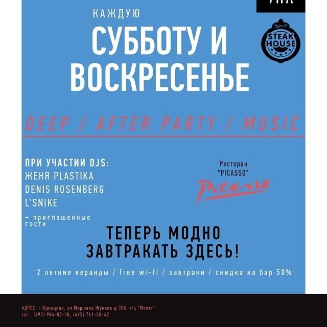 >Что?! #AfterParty69 - Новый проект от создателей легендарных вечеринок "Dj-cafe Panorama" & "PohititeliSnega". >Где?! Cafe "PICASSO" - г.Одинцово, ул.Маршала Жукова д.38б. все с нами))) vk.com/afterpartyodintsovo