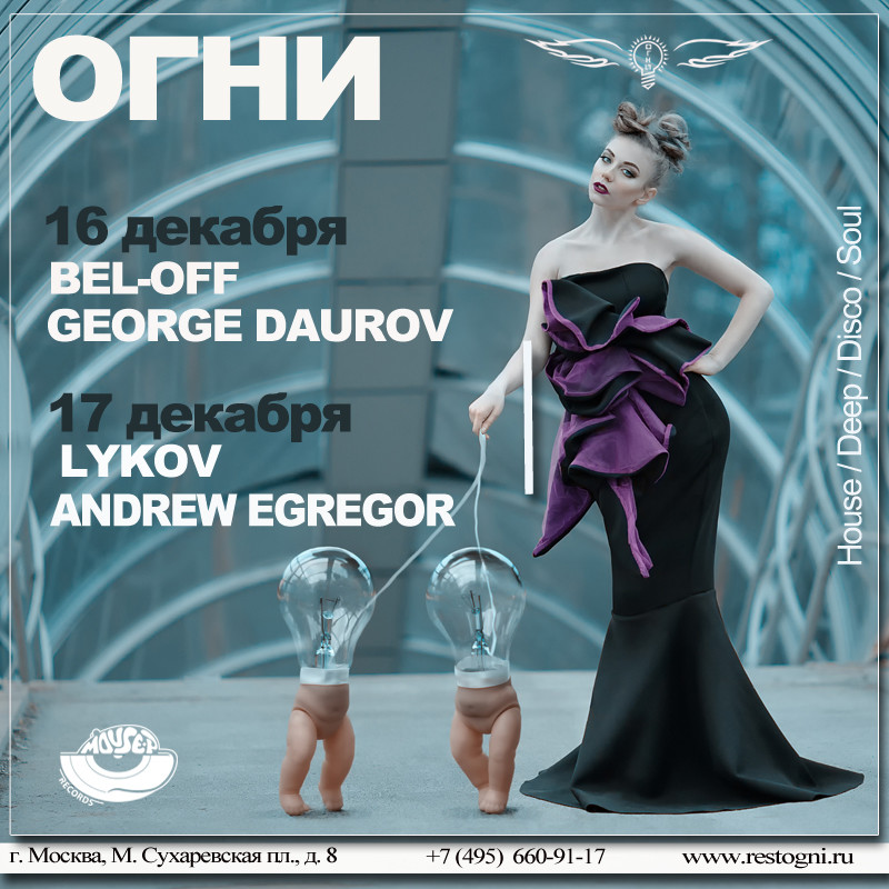 Resident: FASHION MUSIC RECORDS (Moscow), MOUSE-P (Moscow), Курвуазье (Courvoisier), (Moscow), Огни (Moscow), ДАНТЕС (Moscow), Шатер (Moscow), WHITE CAFE (Moscow), Рублевский (Moscow), NIGHT BUS CLUB (Moscow), Chesterfield (Moscow), Stariki бар (Moscow)
