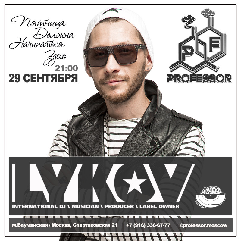 Resident: FASHION MUSIC RECORDS (Moscow), MOUSE-P (Moscow), Курвуазье (Courvoisier), (Moscow), Огни (Moscow), ДАНТЕС (Moscow), Шатер (Moscow), WHITE CAFE (Moscow), Рублевский (Moscow), NIGHT BUS CLUB (Moscow), Chesterfield (Moscow), Stariki бар (Moscow)