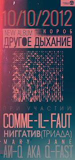 Новый альбом участника "Битвы за Респект" из группы Comme-Il-Faut. Новый альбом Короба выходит 10 октября. Известно, что в записи "Другого дыхания" приняли участие Нигатив, MaryJane, DJ Spot, Ай-Q aka Q-Fast, Ксения Фау. Чтобы скрасить ближайшие 6 дней ожидания, артист предлагает к прослушиванию и просмотру сэмплер релиза.