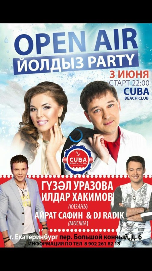 С вами в эту ночь MEGA звезды татарской эстрады - Гузель Уразова, Илдар Хакимов, а так же самый крутой DJ и Король дискотек - DJ Radik & Айрат Сафин. Для приобретения билетов и получения информации звоните 89022618218 Зульфия.