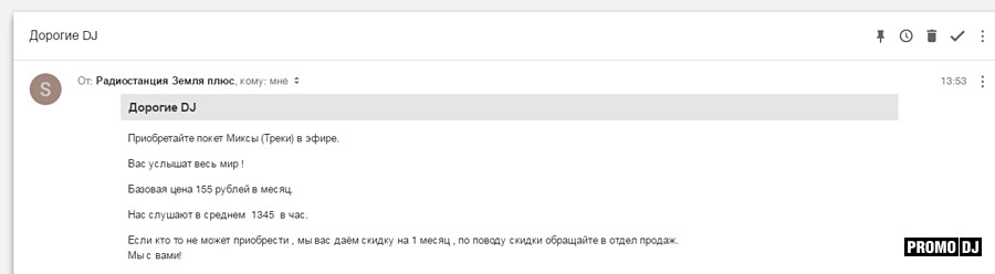 Далее после контакта с этим "отделом" предлагается оплатить (!) за то, чтобы твои треки / миксы играли в будущей (!!) радиопрограмме.