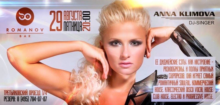 Guest: ICON (Moscow), ICON BAR (Moscow), GIPSY (Moscow), NuBar (ICON / Deep room) (Moscow), RAЙ (Ufa), Icon (Volgograd), Buddha Bar (Moscow), Wow (Moscow), My Moscow Disco (Moscow), Maxim (Moscow), LOOKIN ROOMS (Moscow), ICON Residence (Istra), ZALL  (Moscow), Sky (Sochi), Romanov (Moscow), Батыр (Naberezhnye CHelny), Hype (Kishinev), Maison (Tolyatti), Renaissance (CHeboksary), 16 Тонн (Moscow), ЧЕРДАК (Moscow), Chips (Moscow), HOUDINI (Moscow), Tiffani (Nizhnii Novgorod), The Standard (Moscow), Sanctions (Moscow), Апельсин (YAlta), IDOL (Kazan), Extra Lounge (Serpuhov), Подмосковье (Podolsk)