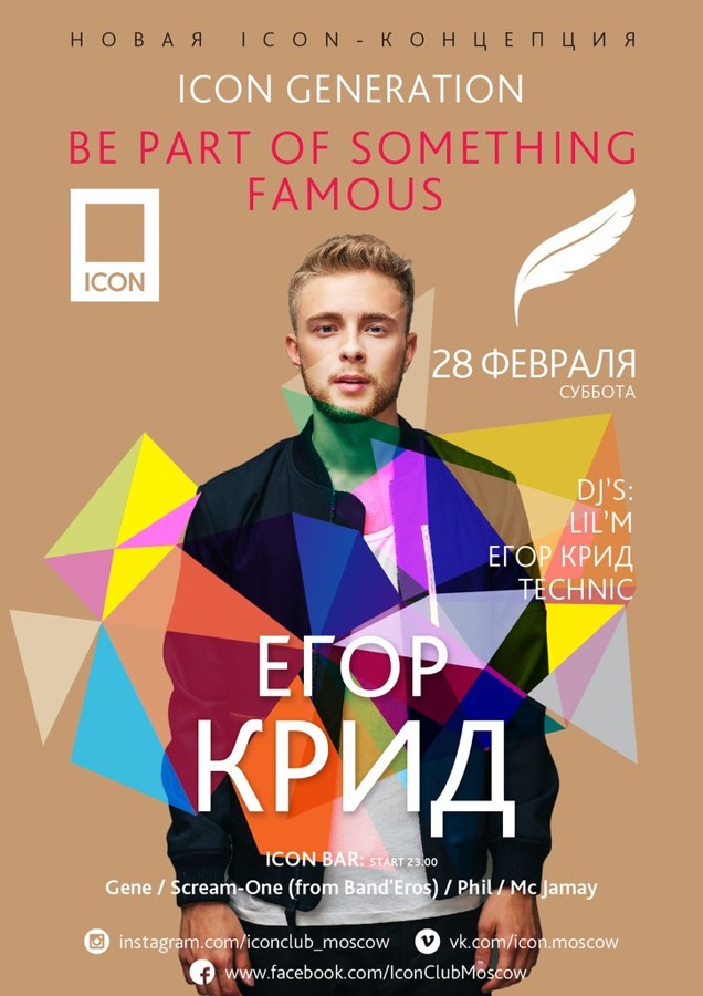 Guest: ICON (Moscow), ICON BAR (Moscow), GIPSY (Moscow), NuBar (ICON / Deep room) (Moscow), RAЙ (Ufa), Icon (Volgograd), Buddha Bar (Moscow), Wow (Moscow), My Moscow Disco (Moscow), Maxim (Moscow), LOOKIN ROOMS (Moscow), ICON Residence (Istra), ZALL  (Moscow), Sky (Sochi), Romanov (Moscow), Батыр (Naberezhnye CHelny), Hype (Kishinev), Maison (Tolyatti), Renaissance (CHeboksary), 16 Тонн (Moscow), ЧЕРДАК (Moscow), Chips (Moscow), HOUDINI (Moscow), Tiffani (Nizhnii Novgorod), The Standard (Moscow), Sanctions (Moscow), Апельсин (YAlta), IDOL (Kazan), Extra Lounge (Serpuhov), Подмосковье (Podolsk)