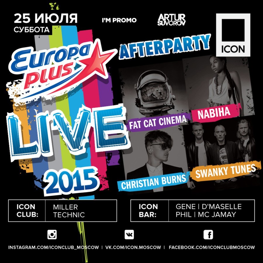 Guest: ICON (Moscow), ICON BAR (Moscow), GIPSY (Moscow), NuBar (ICON / Deep room) (Moscow), RAЙ (Ufa), Icon (Volgograd), Buddha Bar (Moscow), Wow (Moscow), My Moscow Disco (Moscow), Maxim (Moscow), LOOKIN ROOMS (Moscow), ICON Residence (Istra), ZALL  (Moscow), Sky (Sochi), Romanov (Moscow), Батыр (Naberezhnye CHelny), Hype (Kishinev), Maison (Tolyatti), Renaissance (CHeboksary), 16 Тонн (Moscow), ЧЕРДАК (Moscow), Chips (Moscow), HOUDINI (Moscow), Tiffani (Nizhnii Novgorod), The Standard (Moscow), Sanctions (Moscow), Апельсин (YAlta), IDOL (Kazan), Extra Lounge (Serpuhov), Подмосковье (Podolsk)
