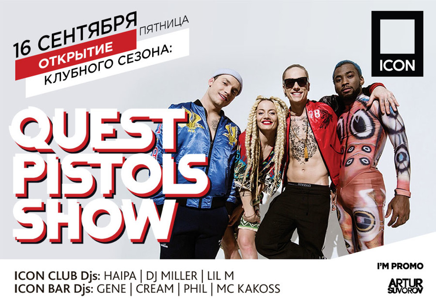 Guest: ICON (Moscow), ICON BAR (Moscow), GIPSY (Moscow), NuBar (ICON / Deep room) (Moscow), RAЙ (Ufa), Icon (Volgograd), Buddha Bar (Moscow), Wow (Moscow), My Moscow Disco (Moscow), Maxim (Moscow), LOOKIN ROOMS (Moscow), ICON Residence (Istra), ZALL  (Moscow), Sky (Sochi), Romanov (Moscow), Батыр (Naberezhnye CHelny), Hype (Kishinev), Maison (Tolyatti), Renaissance (CHeboksary), 16 Тонн (Moscow), ЧЕРДАК (Moscow), Chips (Moscow), HOUDINI (Moscow), Tiffani (Nizhnii Novgorod), The Standard (Moscow), Sanctions (Moscow), Апельсин (YAlta), IDOL (Kazan), Extra Lounge (Serpuhov), Подмосковье (Podolsk)