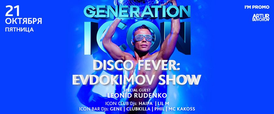 21 октября в ICON пройдет вечеринка серии GENERATION ICON Гостей клуба ждет яркое, шокирующее и провокационное зрелище — EVDOKIMOV SHOW Основанное в 1998 году Анатолием Евдокимовым Evdokimov Show сегодня — это самое качественное и дорогое шоу в России, пародирующее российских и зарубежных звезд. Не даром оно дважды становилось лауреатом премии Night Life Awards, как лучшее в стране, а его бессменный лидер получил приглашение от самого Марка Джейкобса стать лицом международного сайта marcjacobs.com. Этой ночью в ICON приготовьтесь испытать новые эмоции, впитать сумасшедшую энергетику, окунуться в атмосферу счастья и любви!
