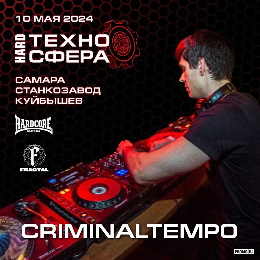Максим Criminaltempo - термоядерный двигатель самарской электронной hard-сцены, организатор и ди-джей на max-амплитуде, чьи бронебойные сеты уже 8 лет сотрясают event-площадки разного калибра в рамках локального коммьюнити Hardcore Samara. Год назад его аллигаторные навыки организатора стали фундаментом для молодого hardtechno ядра Самары - FRACTAL. Support your local DJ!