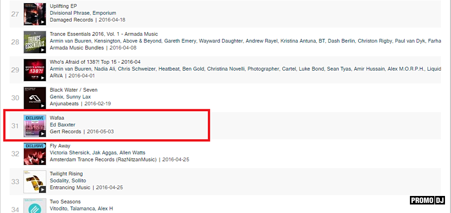 Релиз Wafaa - Ed Baxxter попал в TRANCE TOP 100 RELEASES на beatport и пока занимает 31 место.