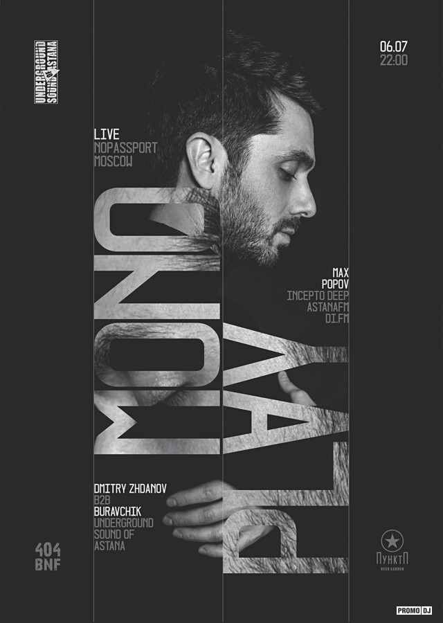 Monoplay – московский вокалист, диджей и продюсер. Резидент NOPASSPORT. Имеет релизы на лейбле Стива Бага Poker Flat.