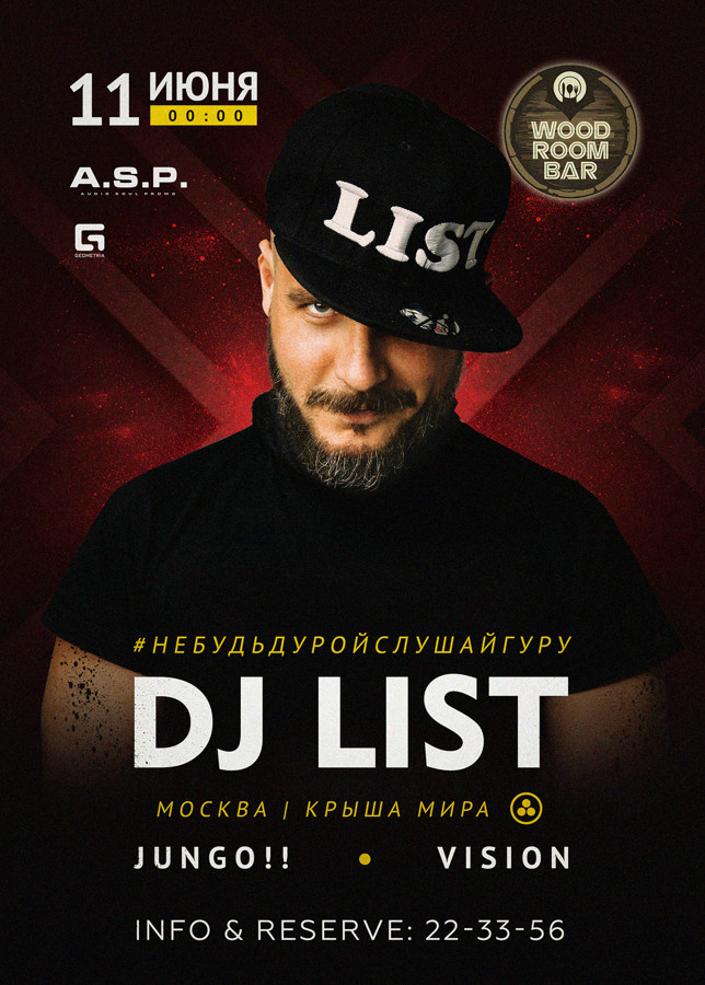 Guest: Megapolis (Moscow), Megapolis FM Moscow (Moscow), The House (Kirov), Chapaev (Moscow), the Gosty Club (Moscow), Мио (Moscow), Chillim (Kirov), Estrada (Saint Petersburg), Revolution Radio (Saint Petersburg), Fabrika Bar & Club (Kirov), Pioneer DJ Moscow (Moscow), Alfa Future People (Nizhnii Novgorod), Fabrika (Kirov), центр отдыха Победа (Kirov), Z-City (Evpatoriya), NuBar (Moscow), STONE (Ioshkar-Ola), Paradise (Saint Petersburg), KaZantip (Evpatoriya), PROMODJ TV (Moscow), Москва City (Saint Petersburg), ПАПА Бар (Moscow), X.O. (Vologda), Luxor (Kazan), Tonino Lamborghini (Moscow), Театр (Glazov), Оки Доки (Moscow), LUX (Saint Petersburg), Aivengo (Podolsk), Dark Pleasure Records / Proton Music (Istanbul)
