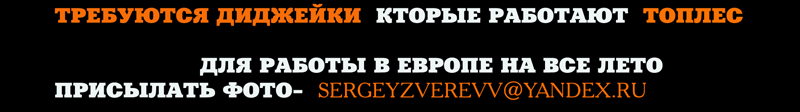 ТРЕБУЮТСЯ ДИДЖЕЙКИ КОТОРЫЕ РАБОТАЮТ ТОПЛЕС ДЛЯ РАБОТЫ В ЕВРОПЕ НА ВСЕ ЛЕТО! КОНТРАКТ ПОДПЫСЫВАЕТСЯ С КАЖДОЙ ИНДИВИДУАЛЬНО! ТЕЛ 8 926 128 81 80