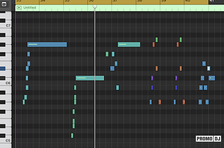 Так же ниже ноты баса (808 с легким овердрайвом и сильно обработанный эквалайзером + поигрался с adsr)