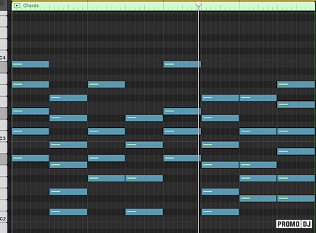 Здесь немного другие аккорды, в той же тональности на плагине Stage-73: A maj7, G# m7, C# m7, G# m7