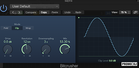На мастер я повесил биткрашер, чтобы при cut off высоких частот на эквалайзере добавить легкую лоуфайность и "Подводное звучание". Естественно, он вступает только тогда, когда есть эффект cut off и уходит, когда микс выходит "из-под воды"