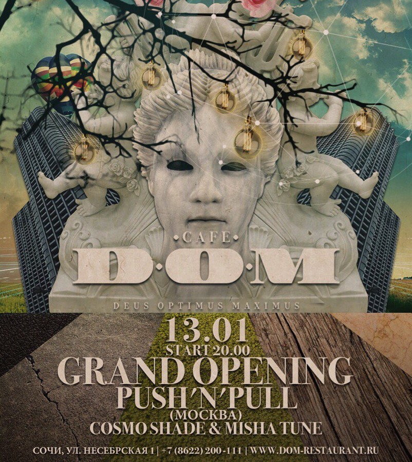 Resident: Cafe D.O.M. (Sochi), The BOX by Primorskaya (Sochi), Central Park (Sochi), Sky (Sochi), Kakadu (Gelendzhik), Boroda (Novorossiisk)