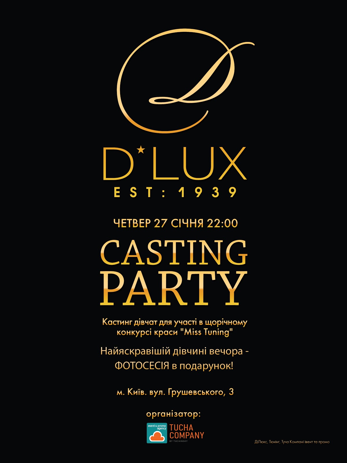 На вечеринке, которая пройдет после окончания кастинга, девушек ожидают сюрпризы от дизайнера "Natalia Tausher" - сертификаты на приобретение платьев.