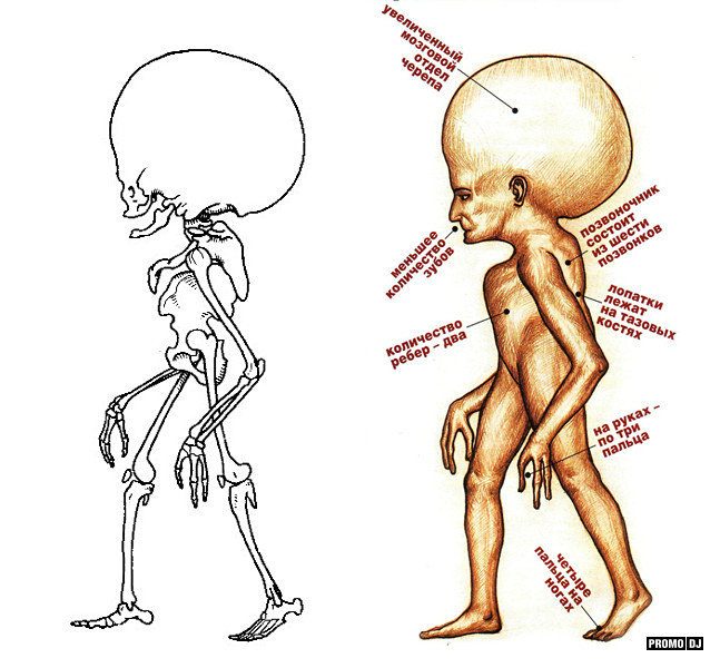 Там была картинка человека будущего. Большая голова, огромные глаза, мелкое тело, и по три пальца на руках. Все сходится(