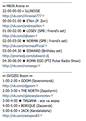 Friends: FONAREV DJ Feel DJ Ratek | TheOne BOBINA Dj Sveta COSMONAUT SPARTAQUE Моди Глю Alexey Sonar ALEXEY ROMEO Johnny Beast SERGEY RIGA DJ СЕРГЕЙ РИГА Ivan Spell DJ ALT blaсk angel Denis A Moonbeam DJ ЦВЕТКОFF Roma Pafos Filatov & Karas BOYKO Dj Сухов VIKTOR STROGONOV DJ DIMIXER DJ Renat / HARERO Sharapov SWANKY TUNES Golden Light Orchestra DJ Stretch No Hopes DVJ KARIMOV all